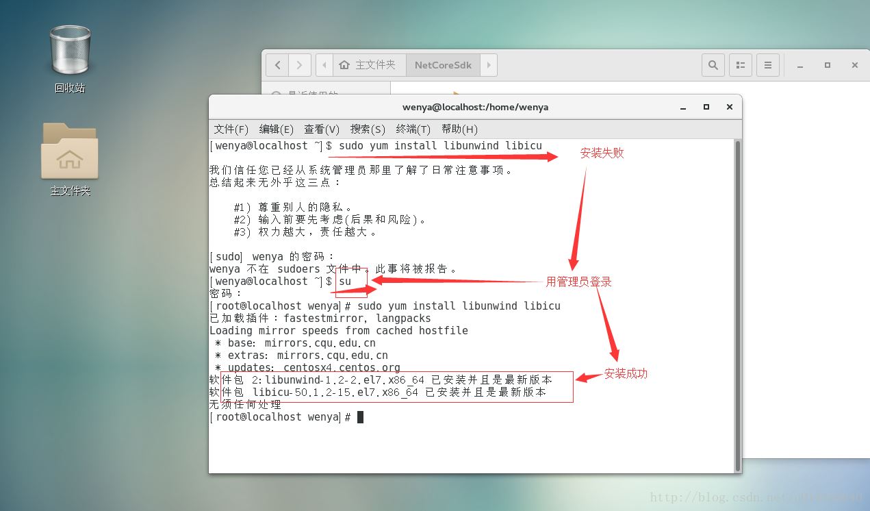 第一步:sudo yum install libunwind libicu(安装libicu依赖)