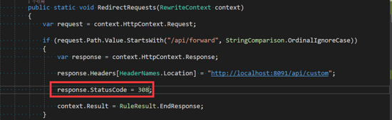 app.UseRewriter(new RewriteOptions().Add(RewriteForwardRules.RedirectRequests));