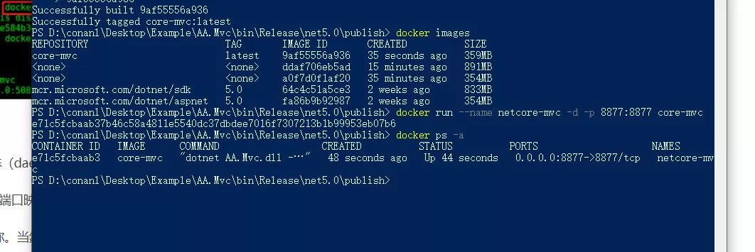 docker run --name netcore-mvc -d -p 50879:80 core-mvc docker ps -a