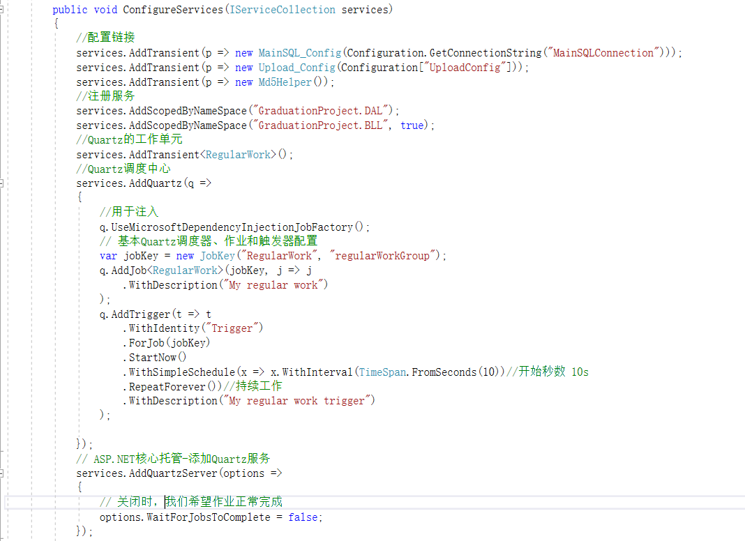 ConfigureServices方法内新增添加Quartz服务