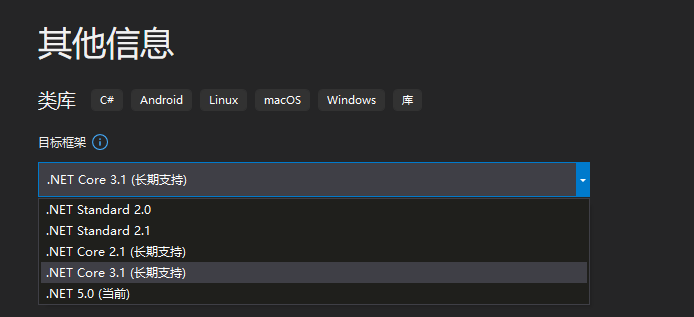 在创建类库的时候就可以选择不同的支持框架。