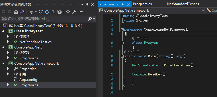 从上面三个结果对比可以看到.net standard里面是没有实现的,只是定义了方法,也就是说定义了一种标准,说明我的类里面有哪些东西。