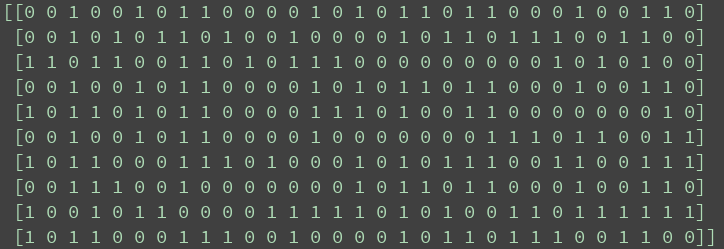 chromosomesEncoded = getIntialPopulation(lengthEncode, 10)