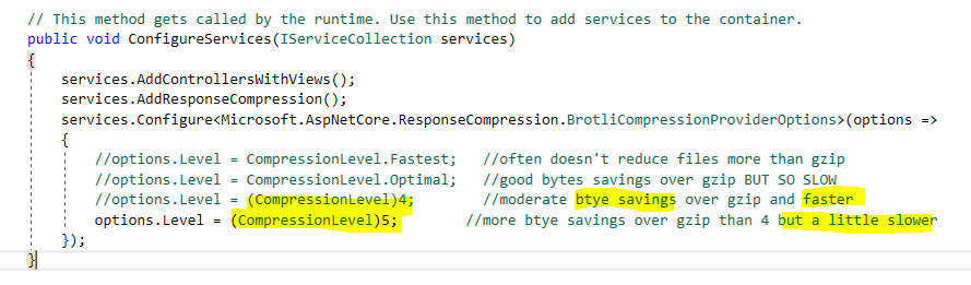services.Configure<BrotliCompressionProviderOptions>(options =>