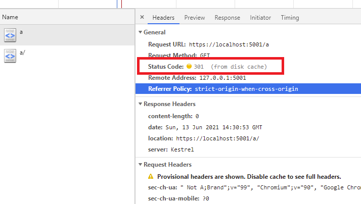 那么访问http://localhost:5000/a 就好。
