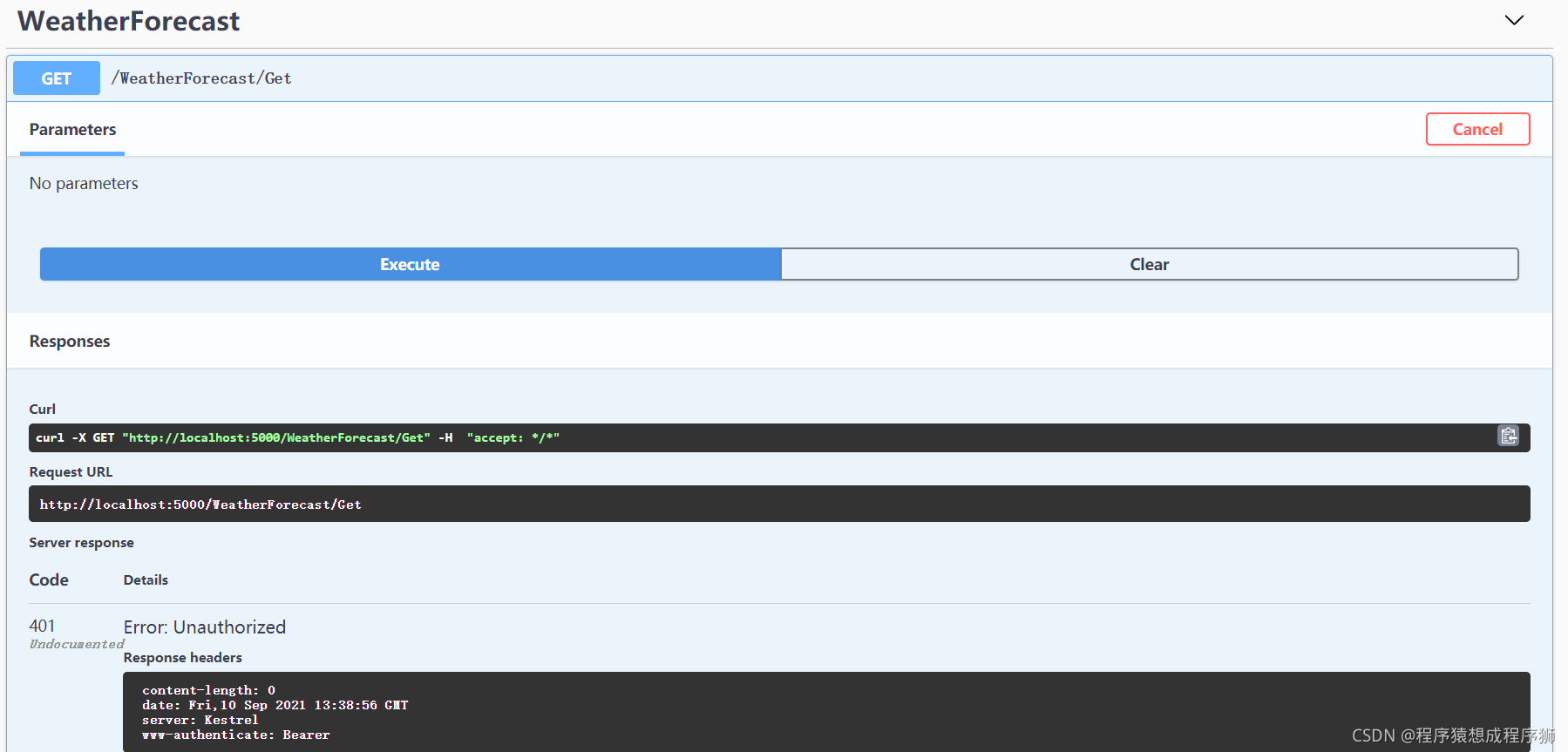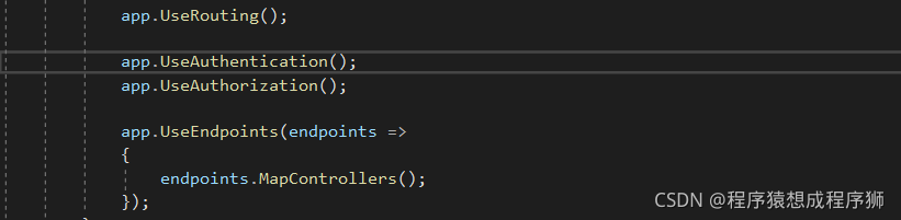在需要进行身份认证的接口或控制器上加上特性[Authorize]