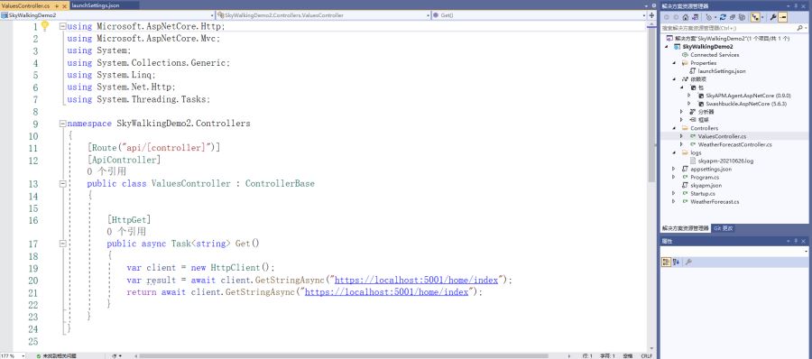 本文将从0开始搭建两个webapi项目,使用Skywalking来追踪他们之间的调用关系及响应时间。开发环境为VisualStudio2019