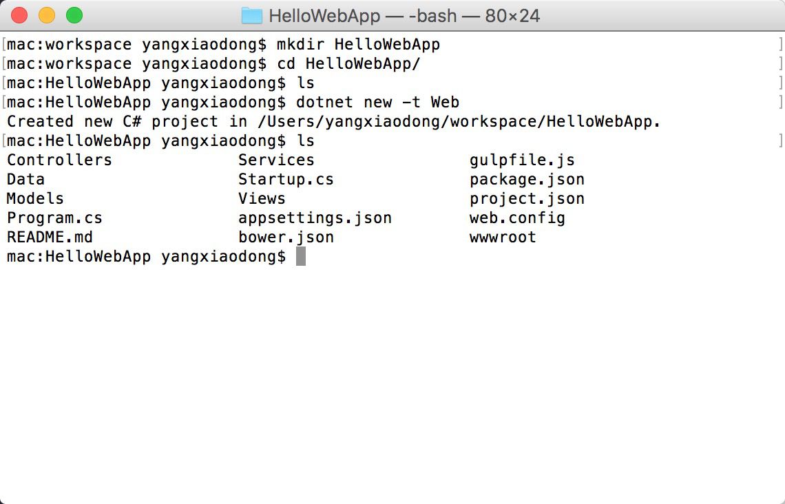 mkdir HelloWebApp 这个命令是创建一个名为 HelloWebApp 的文件夹。