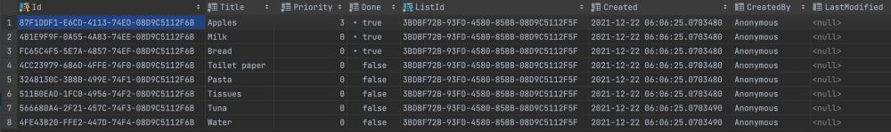 var sampleTodoList = await context.TodoLists.FirstOrDefaultAsync();