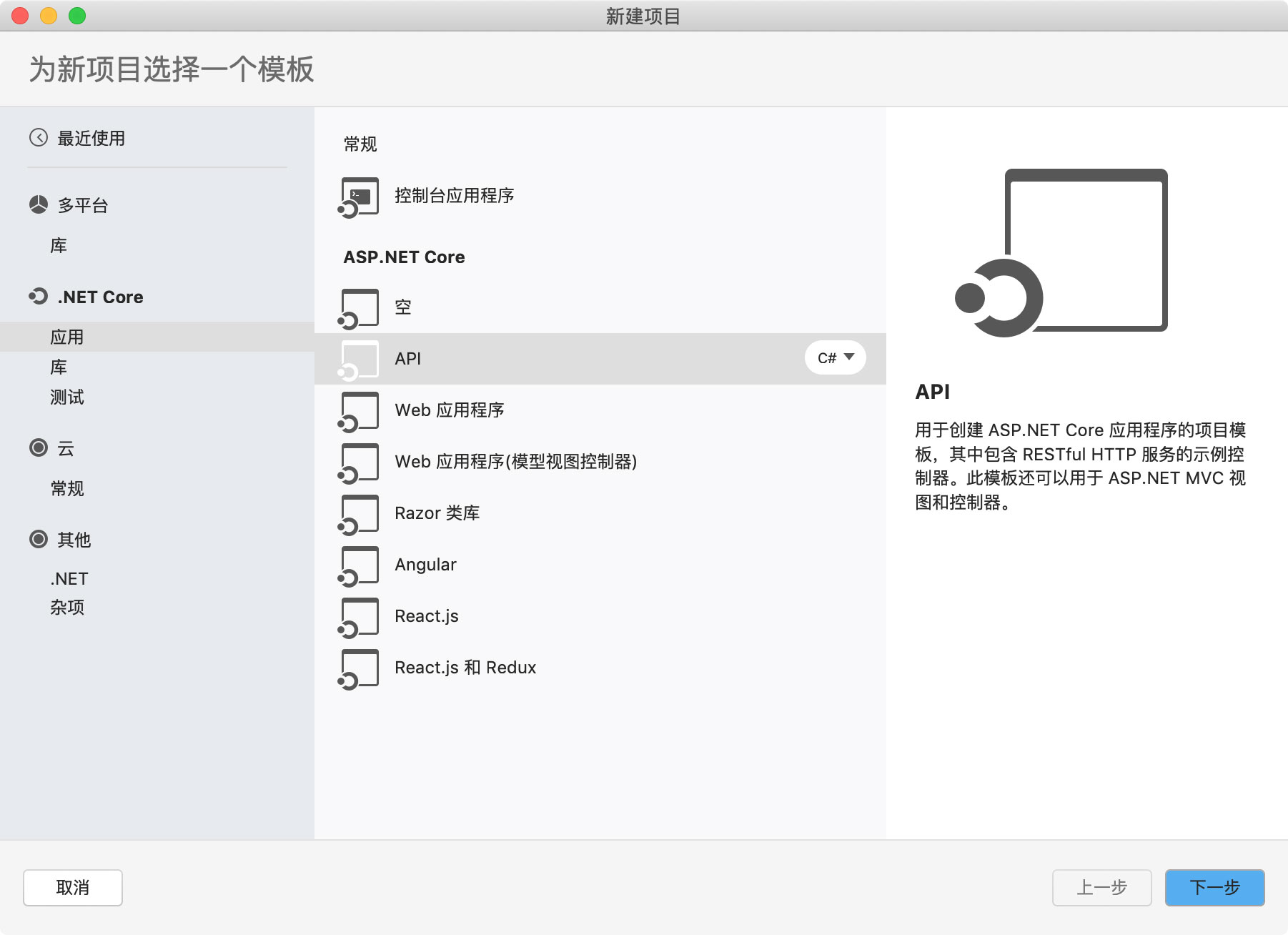 首先新建一个ASP.NET Core 的解决方案WebApi的解决方案