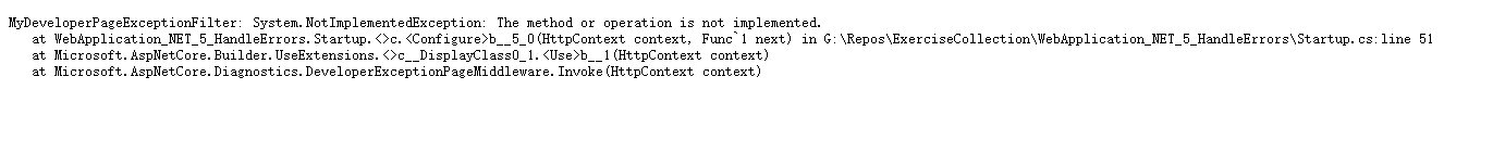 errorContext.HttpContext.Response.WriteAsync($"MyDeveloperPageExceptionFilter: {errorContext.Exception}");