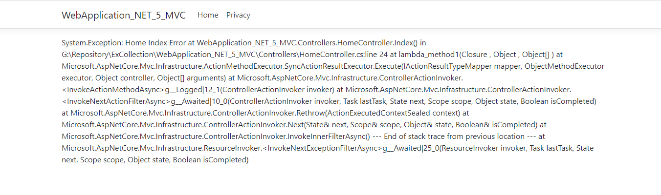现在,我们将该异常处理器加在/Home/Index上,并抛个异常: