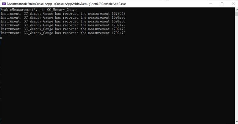 然后使用上面的 MeterListener 来监听计数器指标, 程序的输出如下: