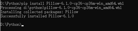 pip install Pillow-6.1.0-cp36-cp36m-win_amd64.whl