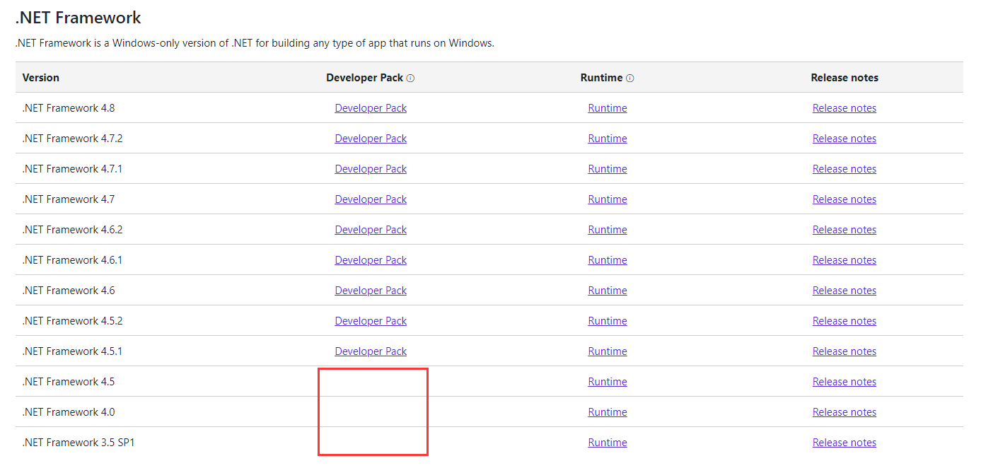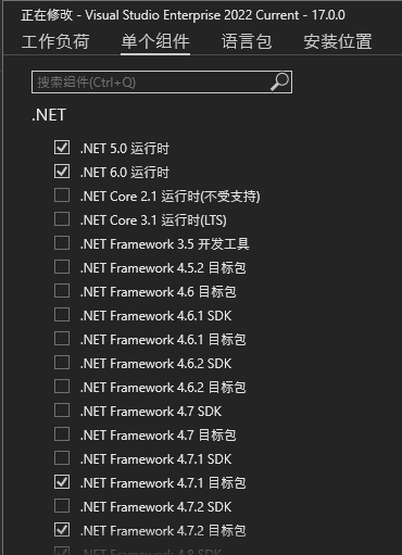 众所周知VS2022将不再支持.NET4.5,即使在Visual Studio Installer中也找不到.NET4.5的选项