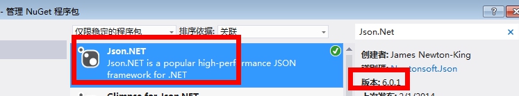当然通过VS进入Nuget管理包也可以进行下载Json.Net的程序包