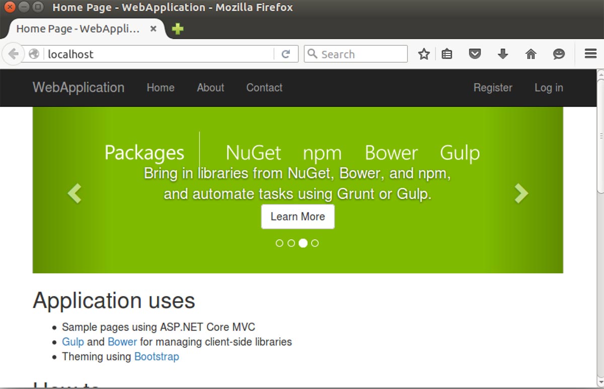 在 Asp.Net Core 项目中,我们使用 dotnet new -t WebApp 命令和创建一个新的空的 Web 应用程序,然后使用dotnet resotre还原 Nuget。