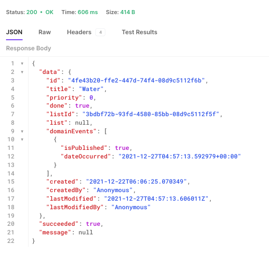 这篇文章主要在实现PUT请求的过程中介绍了如何通过MediatR去响应领域事件,我们用的示例代码中类似“创建TodoList”,包括后面会讲到的“删除TodoItem”之类的领域事件,都是相同的处理方式,我就不一一演示了。