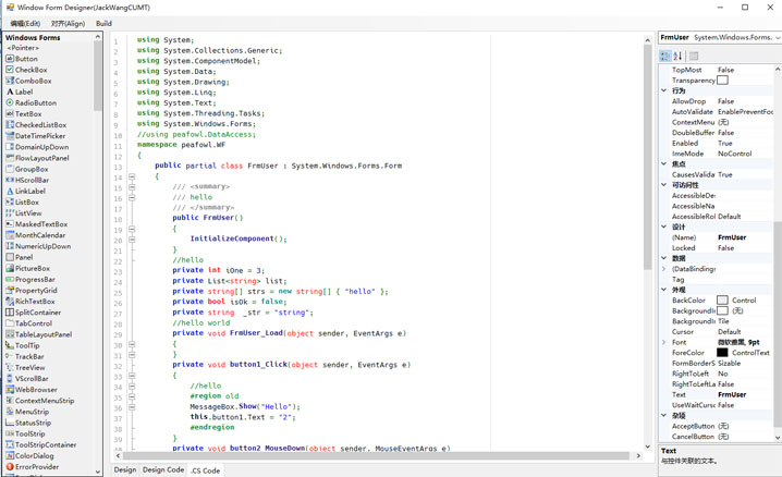 .CS Code其实最简单的就是读取源代码,然后返回就可以了。当设计器添加控件或者绑定事件时,可以通过文本操作进行代码完善。