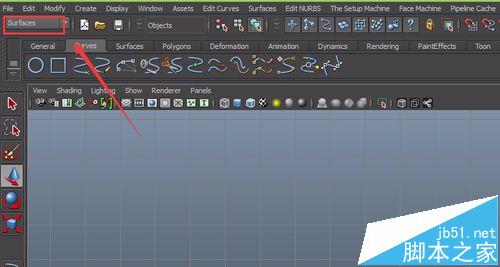 7、选择编辑后的曲线,在功能模块里切换到surfaces模式,如图所示: