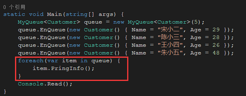 queue.EnQueue(new Customer() { Name = "朱小五", Age = 48 });