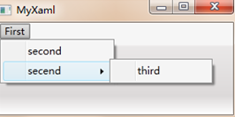 <Grid> <Menu> <MenuItem Header="First" > <MenuItem Header="second"/> <MenuItem Header="secend"> <MenuItem Header="third" Click="Handler"/> </MenuItem> </MenuItem> </Menu> </Grid>