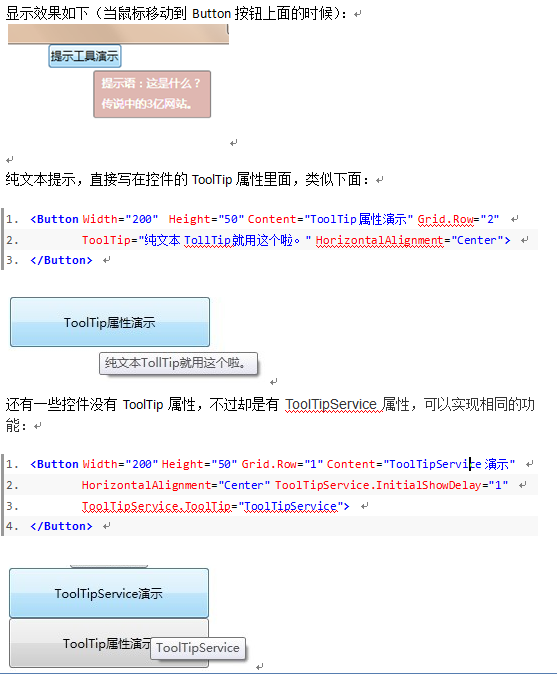 4、 ToolTip控件, Tooltip控件是一个简单,但非常有用的控件。它能够为我们的软件提供非常漂亮的提示信息,提高软件的可用性,给用户比较好的体验。上xaml:
