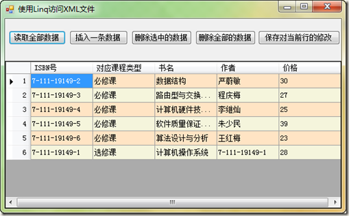 首先得到选中的那一行,通过ISBN号来找到这个元素,然后用Remove方法直接删除,如下: