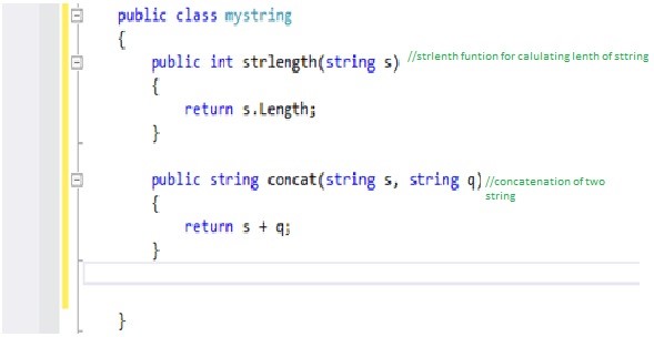 这里我在mystring类中添加了strlength和concat这两个函数。 Strlength函数用来计算字符串的长度,返回一个整型值。Concat函数用于连接两个或多个字符串。