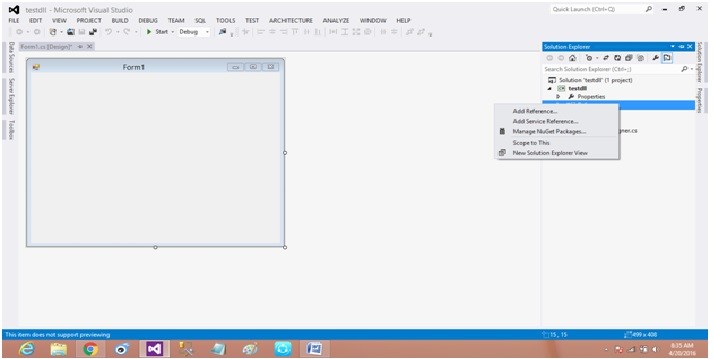 步骤2:将类库添加到testdllwindows窗体应用程序。