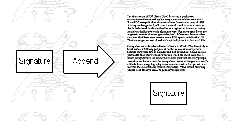将得到的签名,附到文件内容后部,就想到与签名签到文件尾部那样子