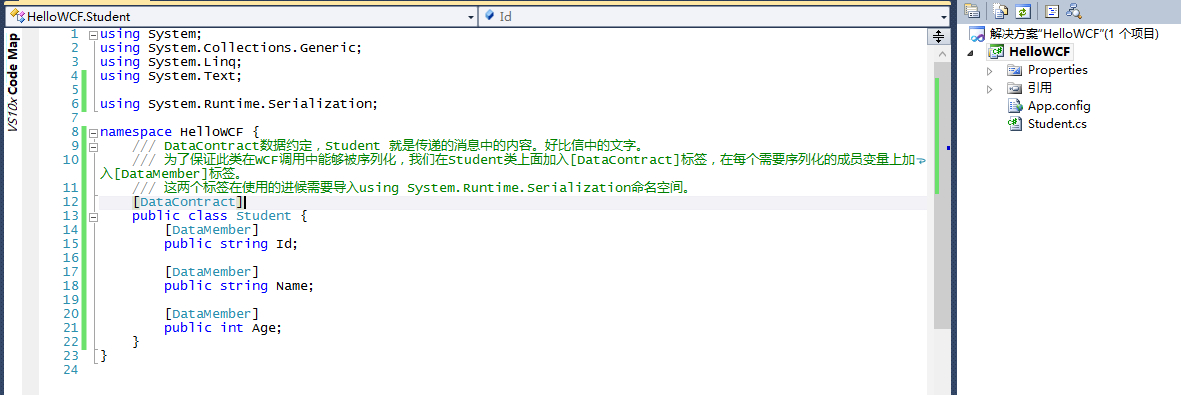 在这个例子中我们将使用VS2010创建一个WCF服务,其中会了解[DataContract][ServiceContract]等特性。