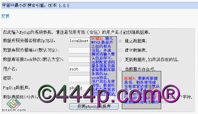 2.运行并配置PHPdig数据库
