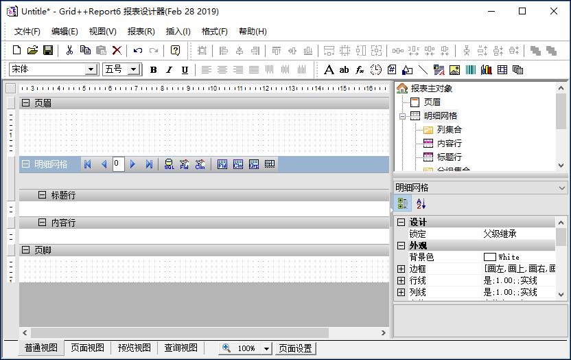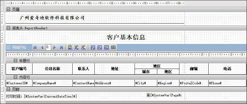 空白的报表模板大概如下所示,包含页眉页脚,以及明细表格的内容。