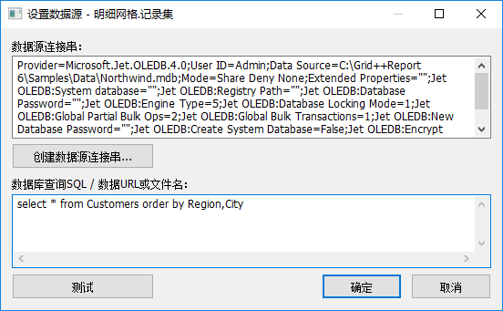 为了方便,我们可以利用案例的Access数据库,也就是Northwind.mdb来测试我们的报表,弄好这些我们指定对应的数据表数据即可。