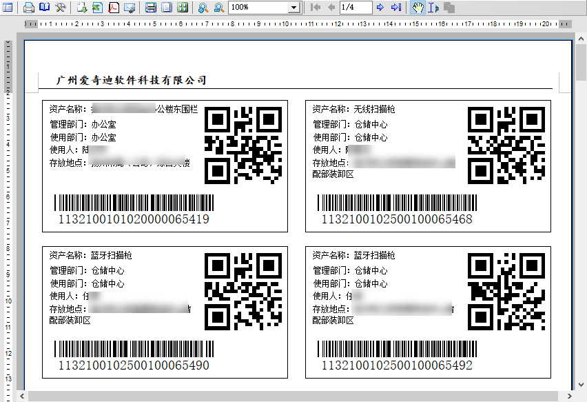 通过上面的操作,感觉生成一个报表还是很方便的,接着我有根据需要做了一个二维码的报表显示,方便打印资产标签。