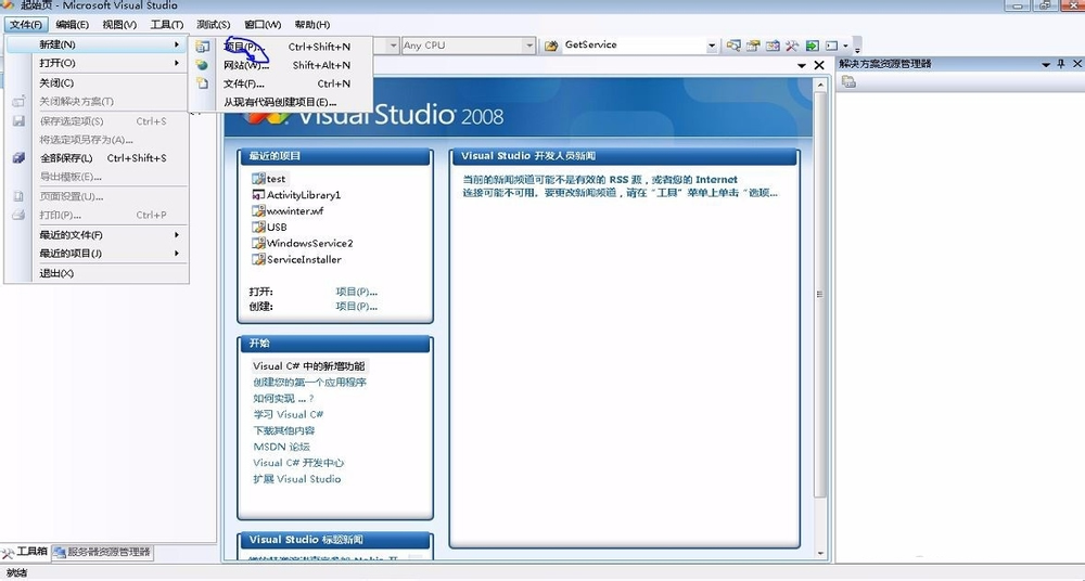 1、打开“Microsoft Visual Studio 2008”,并且新建项目.