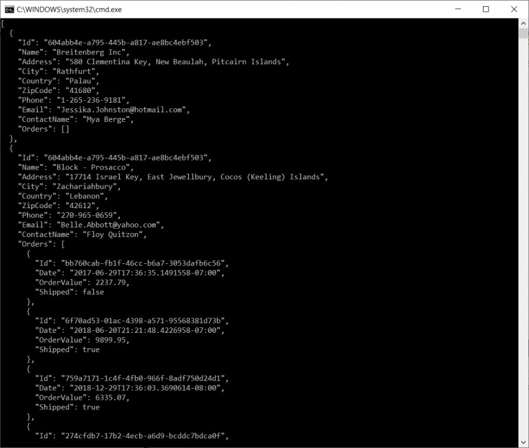 如上所见,程序生成了一个顾客的数据集,并附带了每个顾客的所有订单信息。
