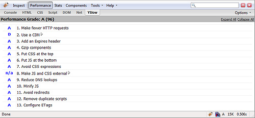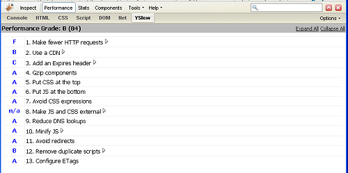 YSlow 是一个较小的、有用的扩展,可以在提高页面加载速度方面为您提供许多帮助。如果您以前未使用过它,那么现在应该使用了。