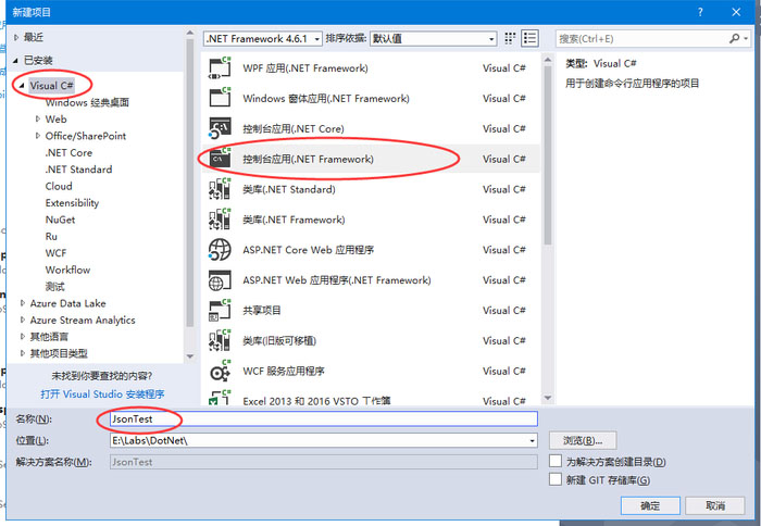 1.创建工程:控制台程序,命名为JsonTest
