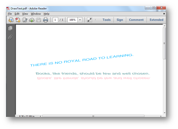 page.Canvas.DrawString("THERE IS NO ROYAL ROAD TO LEARNING. ", font, brush1, 0, 0);