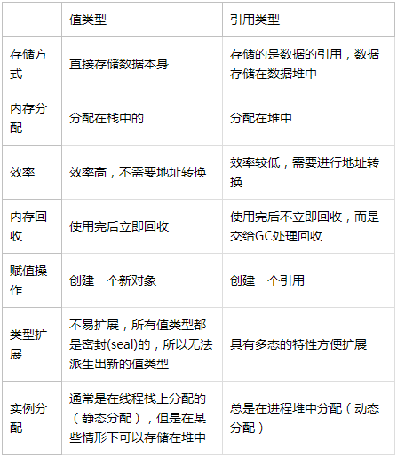 值类型在内存管理方面具有更好的效率,并且不支持多态,适合用做存储数据的载体;引用类型支持多态,适合用于定义应用程序的行为。