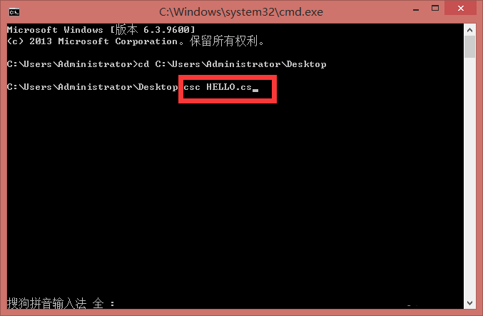 6、开始编译 编译的格式为 csc + 你要编译的代码文件名(要加后缀)