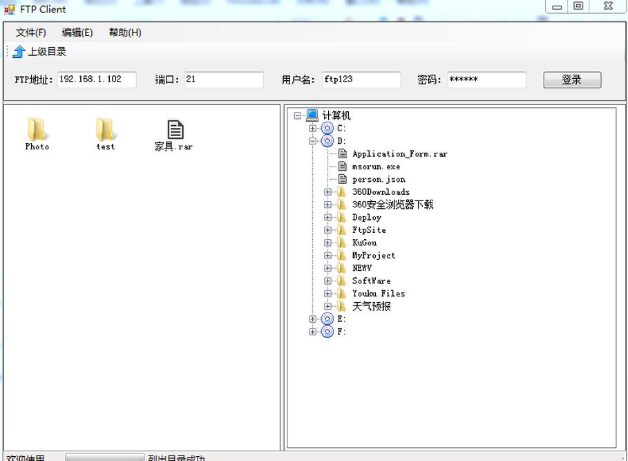 通过读取FTP站点的目录信息,列出对应的文件及文件夹。