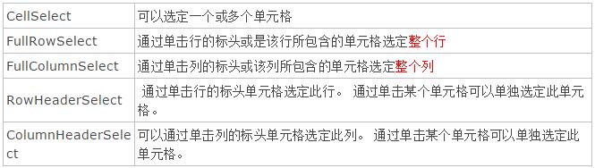 dataGridView1.SelectionMode = DataGridViewSelectionMode.FullRowSelect;// 单击选中整行,枚举