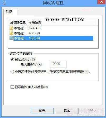 Windows8调整回收站大小方法