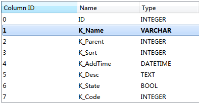 解析:ID不用说了,自增的标识,K_Name:字典名称,K_Parent:父类型标识,就是说如果K_Parent为0,那么它就是一个类型,然后子字典就以它作为父类,这个字段键入父类ID值即可,K_Sort排序就是单个类型的排序,或者你也可以将所有数据作为排序也行,K_AddTime添加时间,K_Desc字典描述,这样可以便于后来的人查看这个是用来干什么的,K_State字典状态,这个呢,可以灵活应用,用来是否显示某个字典或者其他多状态都可以,K_Code字典代码值,这个就很重要了,这个就用作字典的值,很多人或许会问,为什么不用自增ID呢,因为如果类型很多的情况下,这个ID值会越来越大,你定义的类型值本身没有几个,而它的值还这么大,何必呢,旁边这个表就是备忘录表,我就不解释了,自己慢慢体会。