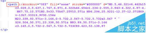 2、svg文件保存后,用文本编辑器打开,找到<path>这一个节点,d属性里面就是这个图片的路径数据【注:在保存svg图标的时候需要使用路径查找器工具将图标制作为复合路径,不然该svg文件中会有多个<path>节点】。