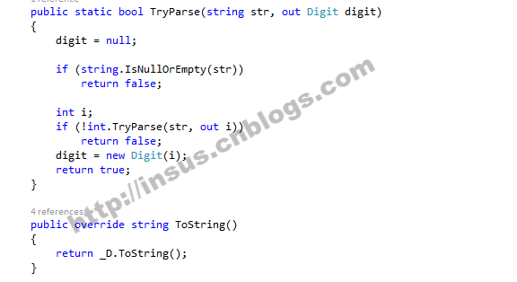 在类别中,添加2个方法,一是判断元素是否为数字,另一个是是重写ToString()方法: