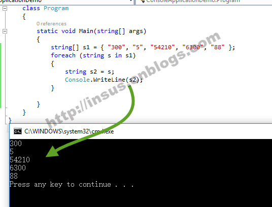 foreach (string s in s1)
